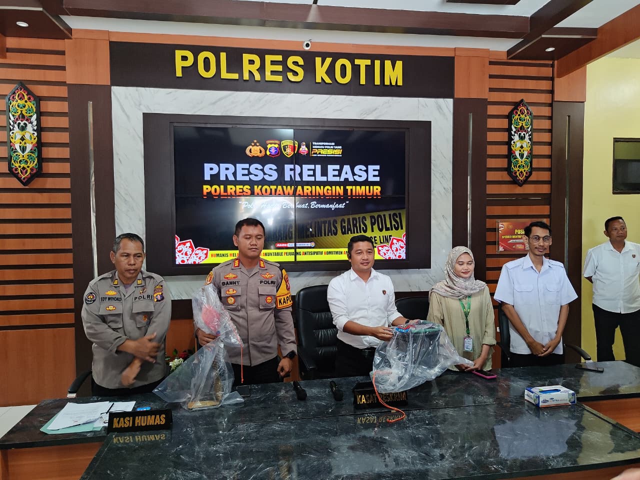 Kasat Reskrim Polres Kotim, AKP Iyudi Hartanto bersama jajaran saat menunjukkan barang bukti yang disita dari pelaku, Senin (6/10/2025). Foto: Apri