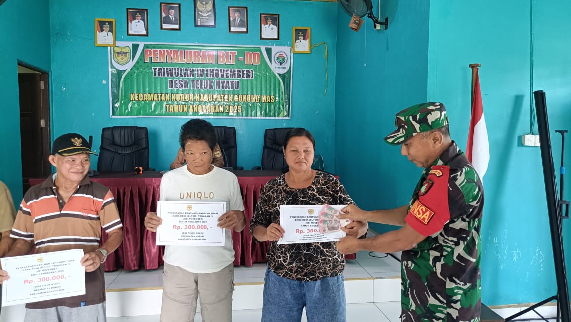 Babinsa Koramil Kurun Dampingi Penyaluran BLT Dana Desa di Teluk Nyatu