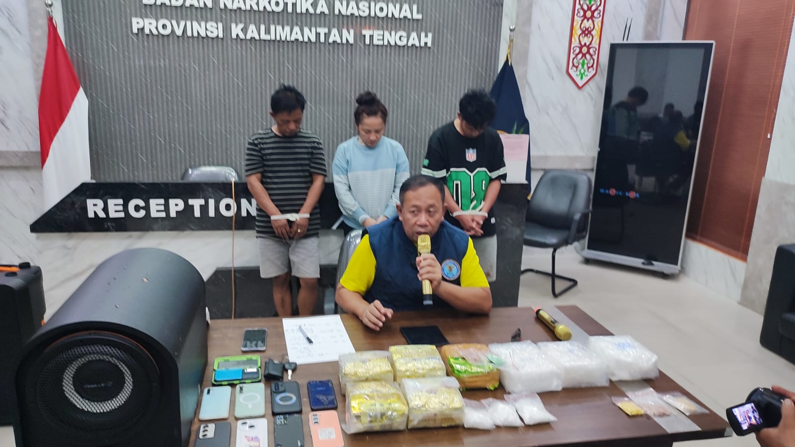 Pelaksana Tugas Kepala BNNP Kalteng, Kombes Pol Ruslan Abdul Rasyid, mengungkapkan ketiga pelaku yang ditangkap ialah pasangan suami istri Agus Sofi dan Cece, serta seorang pemuda bernama Reynold. Mereka ditangkap pada Sabtu (8/11/2025) malam di Jalan Jenderal Sudirman Km 21, dekat Jembatan Sei Lenggana.