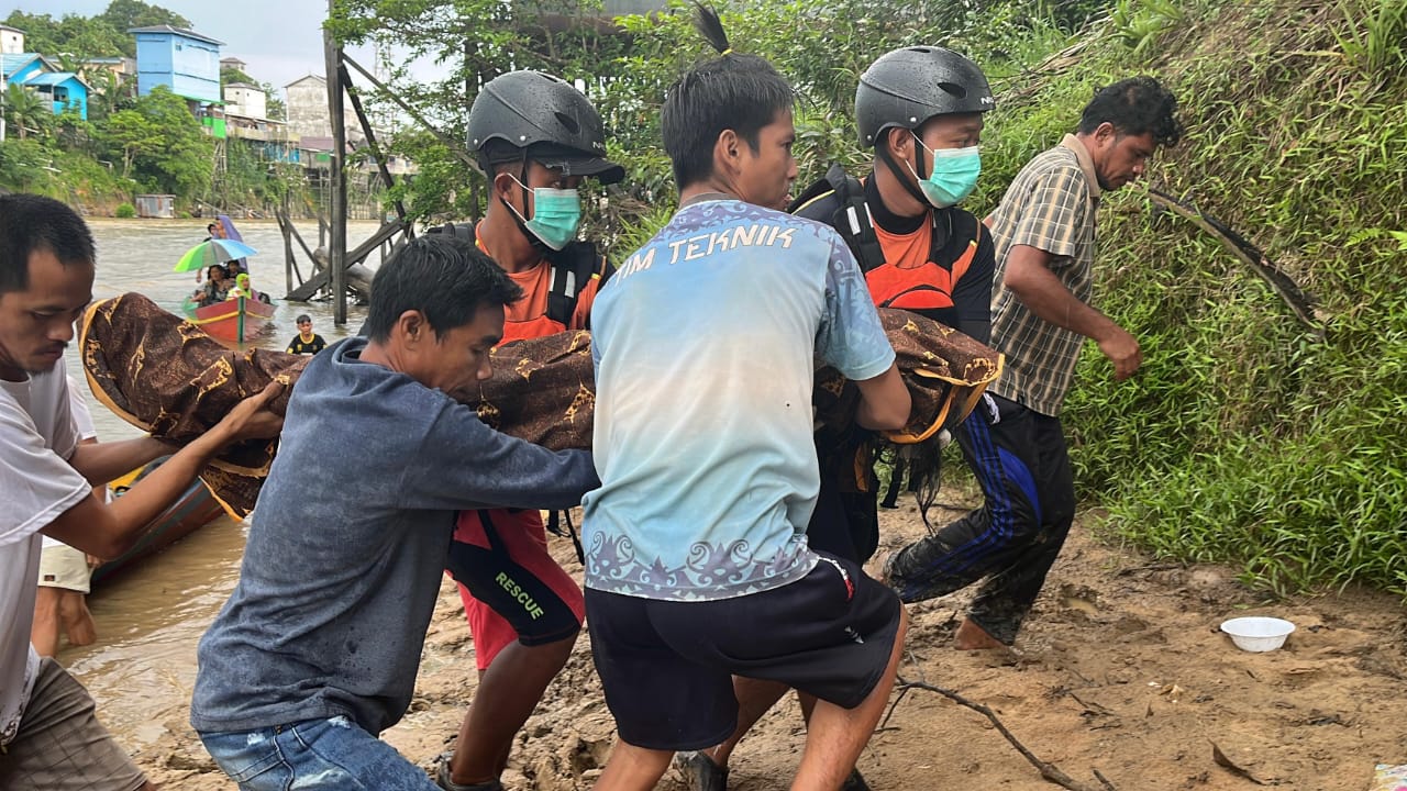 Petugas dan warga saat melakukan evakuasi jasad Masliun 80, warga Kuala Kuayan, Kecamatan Mentaya Hulu, Kabupaten Kotim, pada Minggu (16/11/2025). Foto: Ist