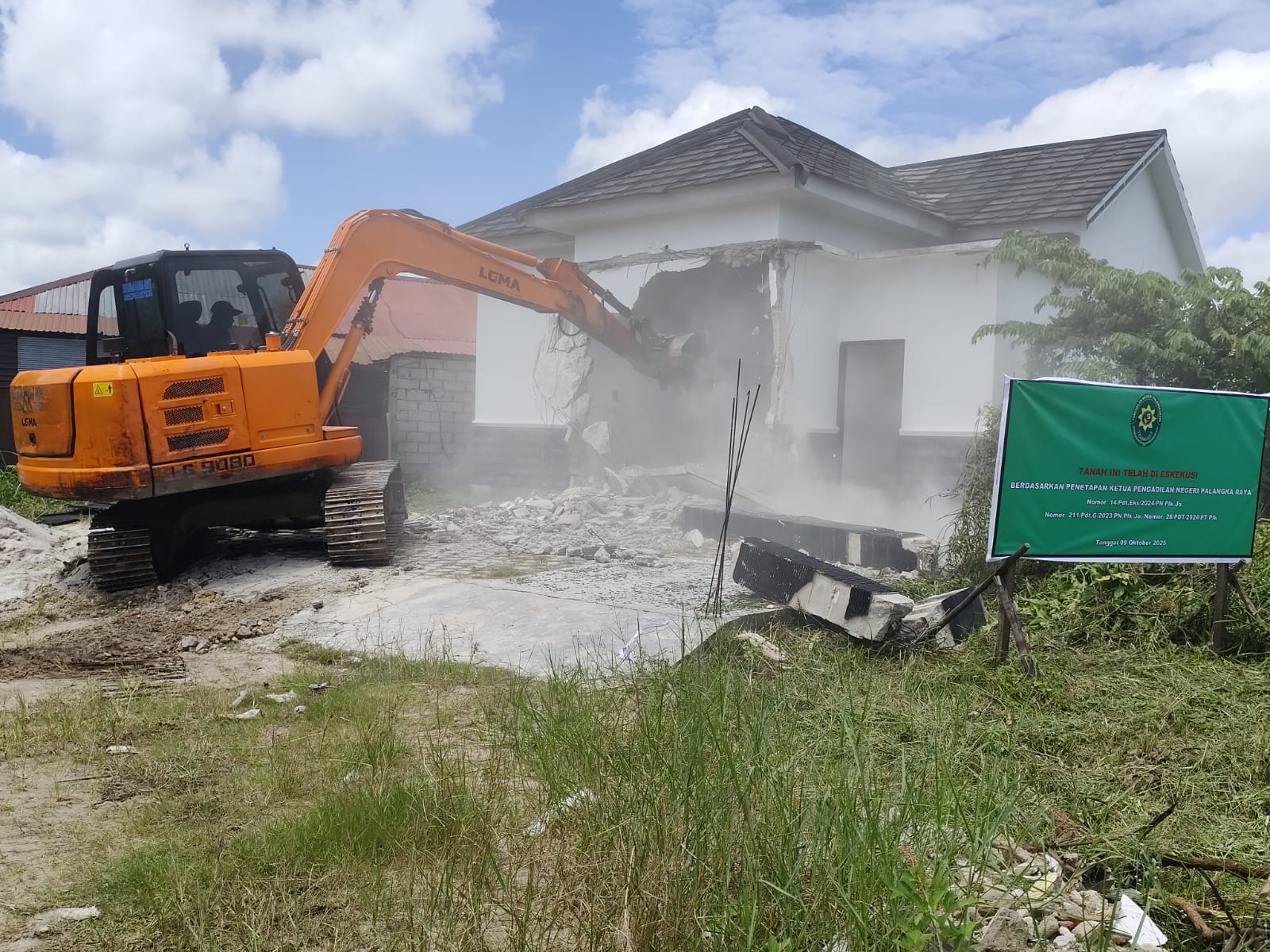 PALANGKA RAYA – Pengadilan Negeri (PN) Palangka Raya melaksanakan eksekusi pengosongan sebidang tanah berukuran 10 x 20 meter dengan merobohkan satu unit rumah di Jalan Menteng XII Blok H, Kelurahan Menteng, Kecamatan Jekan Raya, Senin (17/11/2025). Proses eksekusi berlangsung tertib, aman, dan lancar.