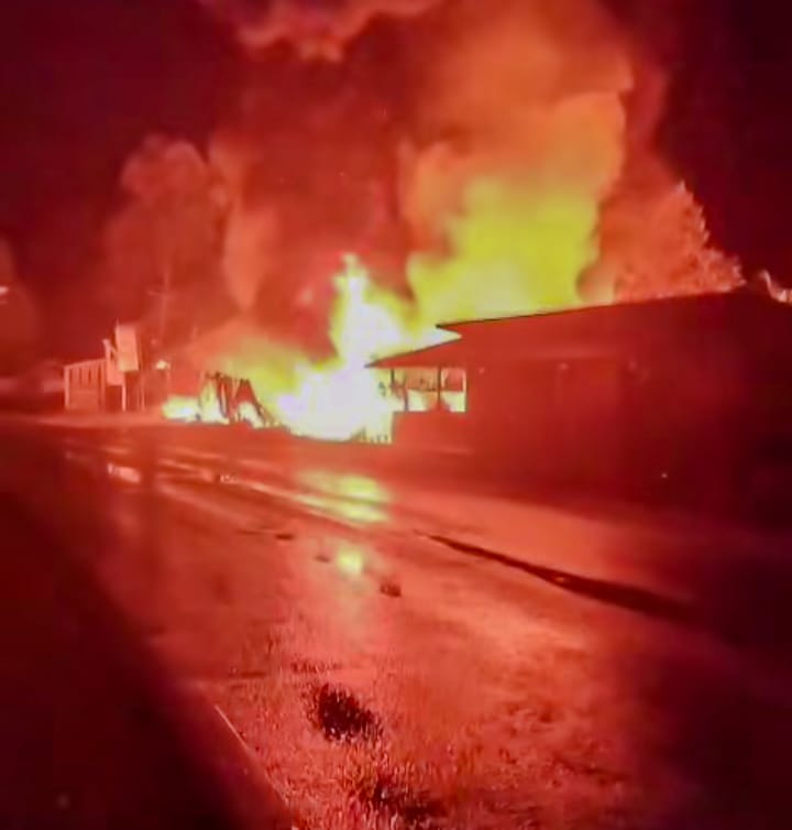 Kebakaran di Jalan Ahmad Yani, Kameloh Baru, Palangka Raya, Kamis dini hari menghanguskan dua warung dan satu rumah panggung. Foto: Ist